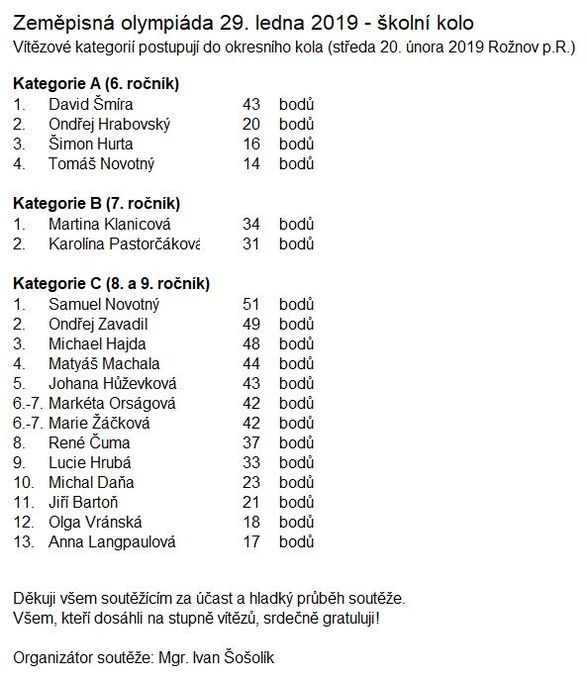 Vítězové: Samuel Novotný (9.r.), Martina Klanicová (7.r.) a David Šmíra (6.r.)
