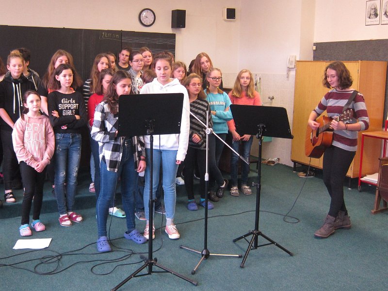 Vystoupení žáků 2. stupně začalo známou písní Václava Neckáře „Půlnoční“ a písní Johna Lennona „Happy Christmas“. V těchto písních zapívala skvělá sóla paní Leona De La Hoz. Věřím, že se jí výsledek naší spolupráce líbil stejně jako nám.