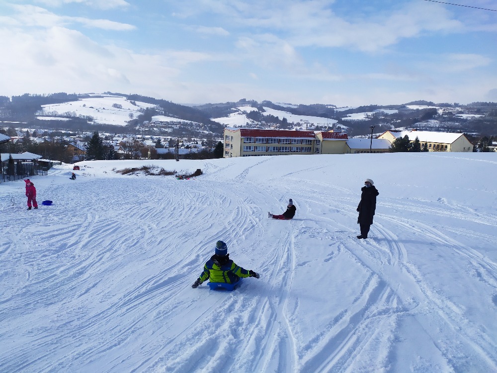 Děti ze 2. a 3. třídy lyžovali na Kyčerce ve Velkých Karlovicích.