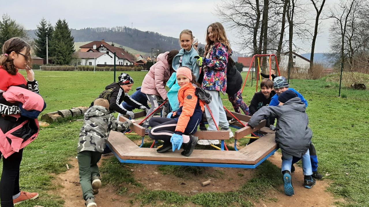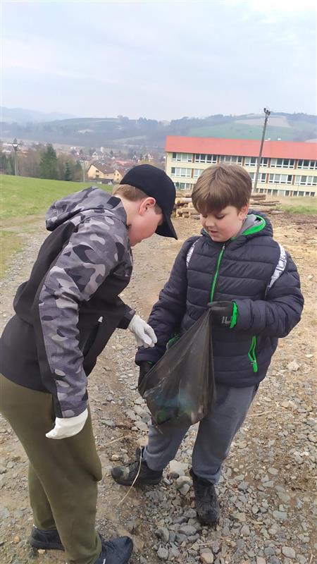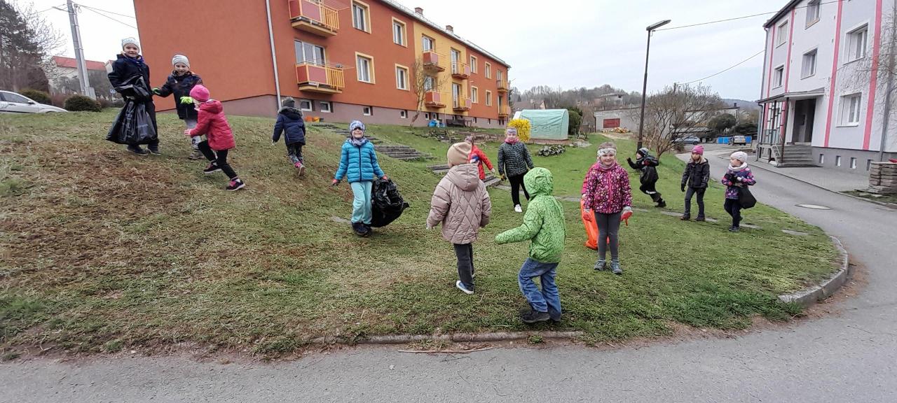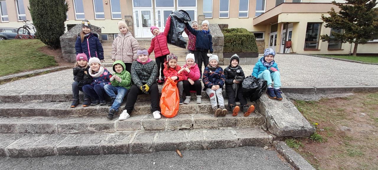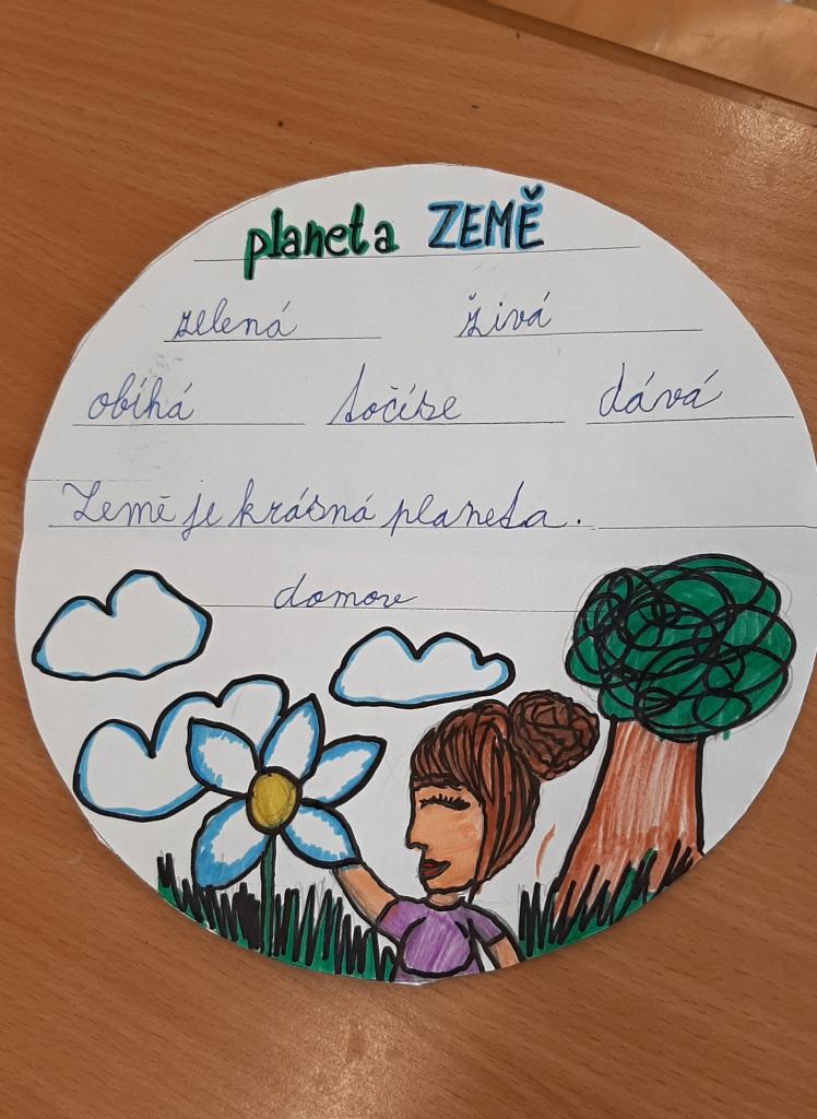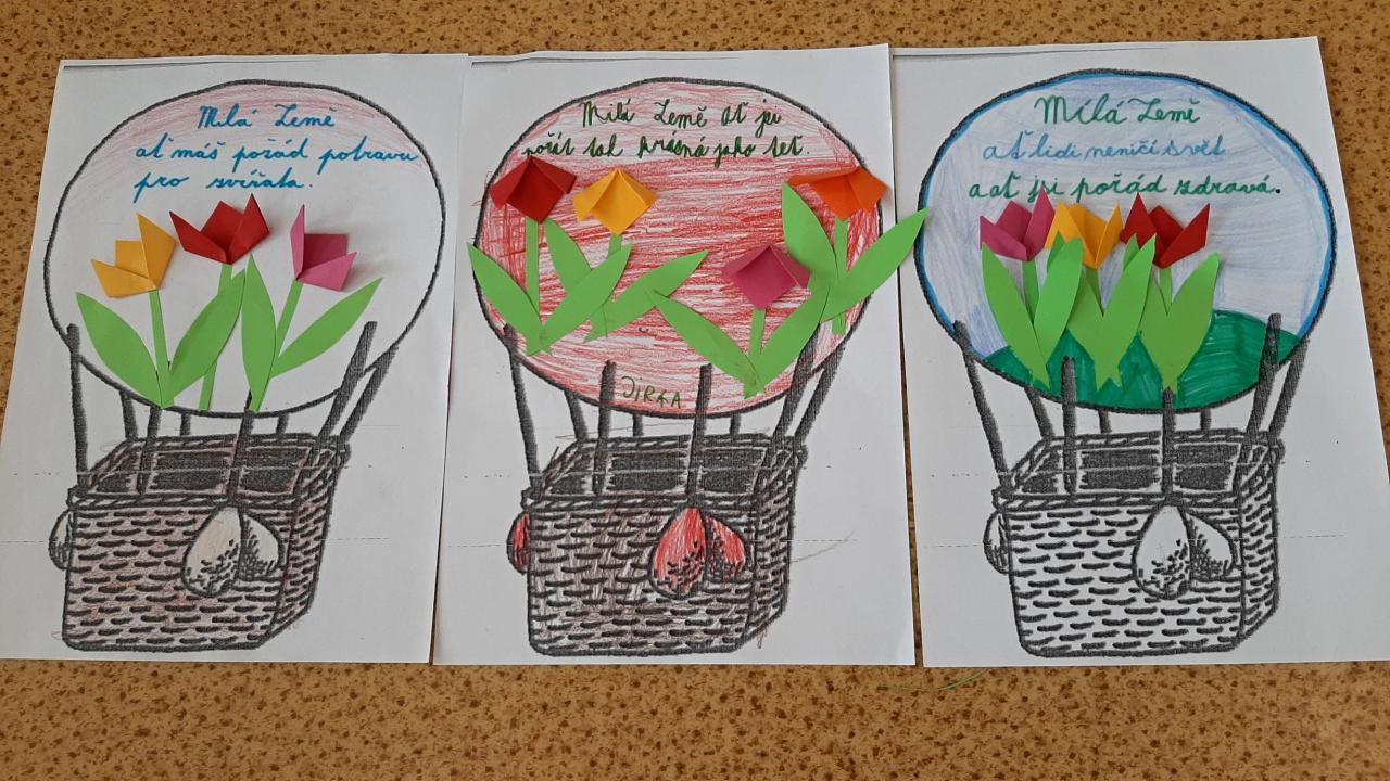 Předposlední dubnový týden jsme si s dětmi vyprávěli, četli a zpívali o naší planetě. Promítání o zvířatech, vycházky s poznáváním a pozorováním jarních rostlin byly také součástí této tématiky. Nezapomněli jsme ani na ekokoutek, který byl zařazen i v písankách u menších dětí. Vytvářeli jsme zajímavé životabásně a hádali, o které zvíře, či rostlinu se jedná. Pětilístky o naší planetě se také moc zdařily. Třídy jsme si vyzdobili krásnými výtvory a obrázky. Každý z nás popřál Zemi čistotu, mír a klid. Zapojili jsme se do akce " Ukliďme Česko" a tedy i naši obec. Naplnili jsme hodně pytlů odpadky a s pocitem dobře vykonané práce jsme se vrátili do školy.