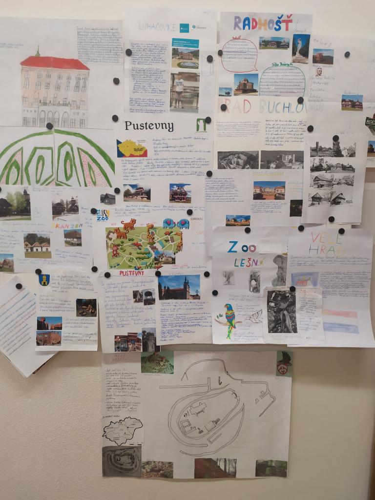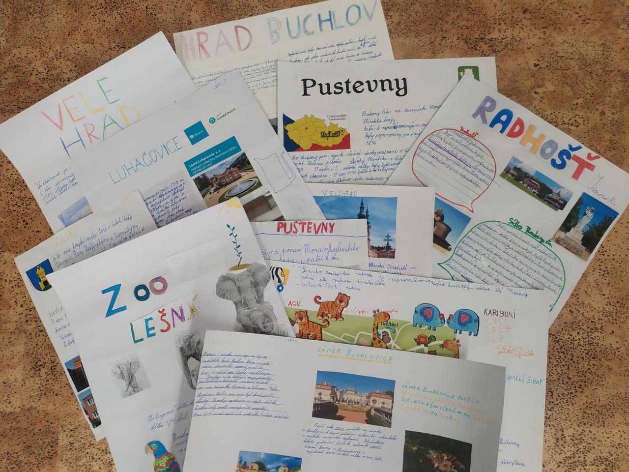 Naši páťáci při pilné práci – čtenářské aktivity, práce s mapou, domácí příprava, prezentace o zajímavém místě našeho kraje.